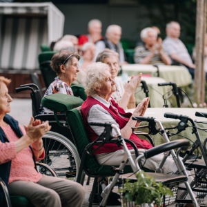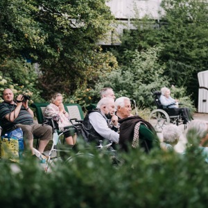 Doch endlich saßen die Bewohner im Garten unserer Anlage jungen Künstlern direkt gegenüber und alle genossen das in diesen Zeiten so Wertvolle - Augenkontakt, Applaus und die lang vermisste Live-Atmosphäre.